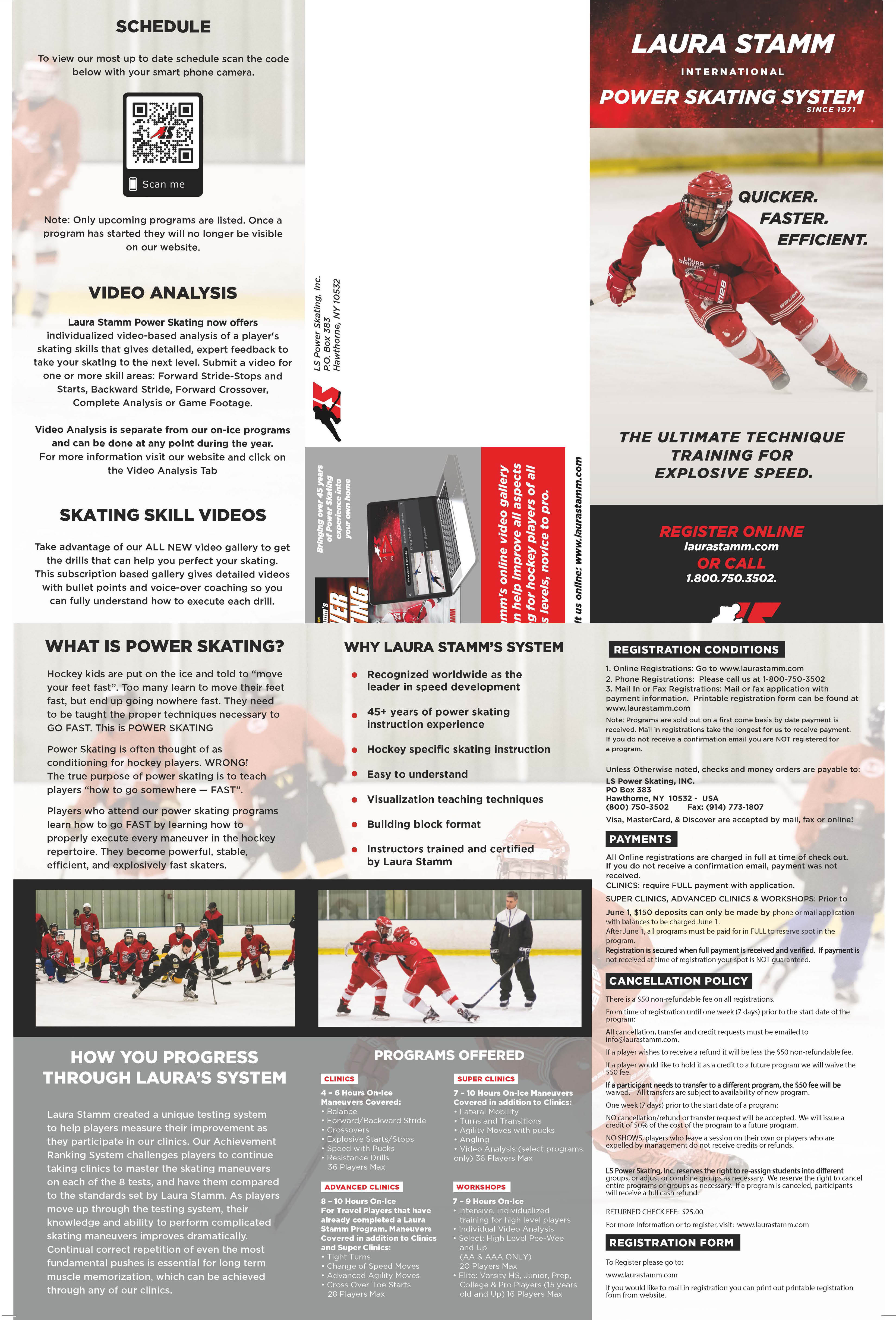 The Laura Stamm International Power Skating System is designed for hockey players of all age and ability levels. Programs include 1-5 day clinics, super clinics, and workshops for elite players. Laura Stamm and her team of Certified Instructors have improved the skating techniques of thousands of hockey players around the world since 1971. Get our brochure here.